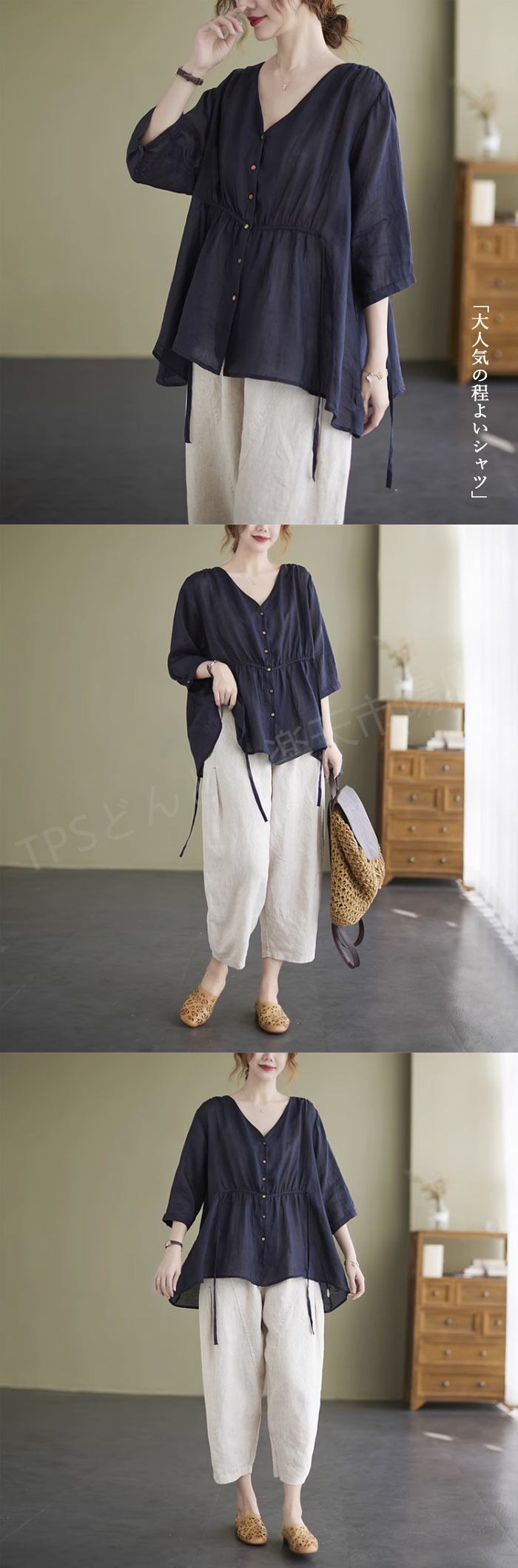 ブラウス レディース オフィス 長袖 七分袖 おしゃれ Vネック 無地 ナチュラル テンセル 柔らかい シャツ オーバーサイズ 大きいサイズ レディース トップス ブラウス トップス レディース 夏 長袖 通勤 お茶会 OL オフィス ファッション | TPSどんどん