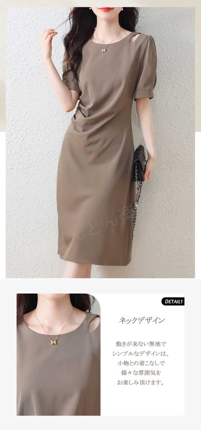 ワンピース 夏 レディース ミディアム丈 ドレス ワンピース ワンピ ロングワンピース 夏 ロング丈 ロングワンピ 無地 ゆったり 体型カバー エレガント 大人ワンピース クルーネック 半袖 Aライン きれいめ おしゃれ 着痩せ | TPSどんどん