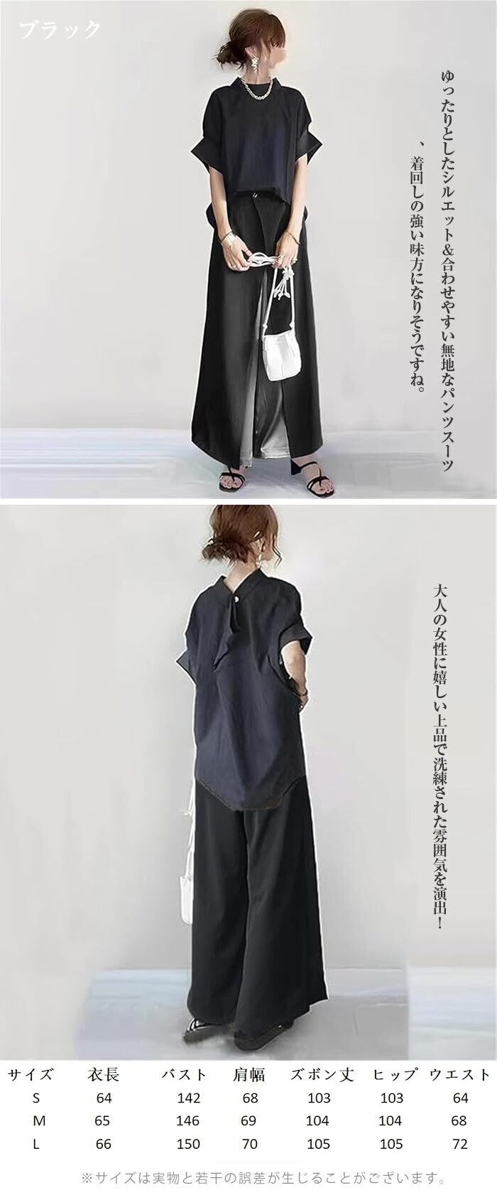 セットアップ レディース カジュアル 夏 シャツ ワイドパンツ 2点セット 黒 ママスーツ おしゃれ 上下セット カジュアル シャツ ワイドパンツ セットアップ 40代 着痩せ セレモニー パンツスーツ フォーマル 大人 ゆったり 通勤 仕事 | TPSどんどん