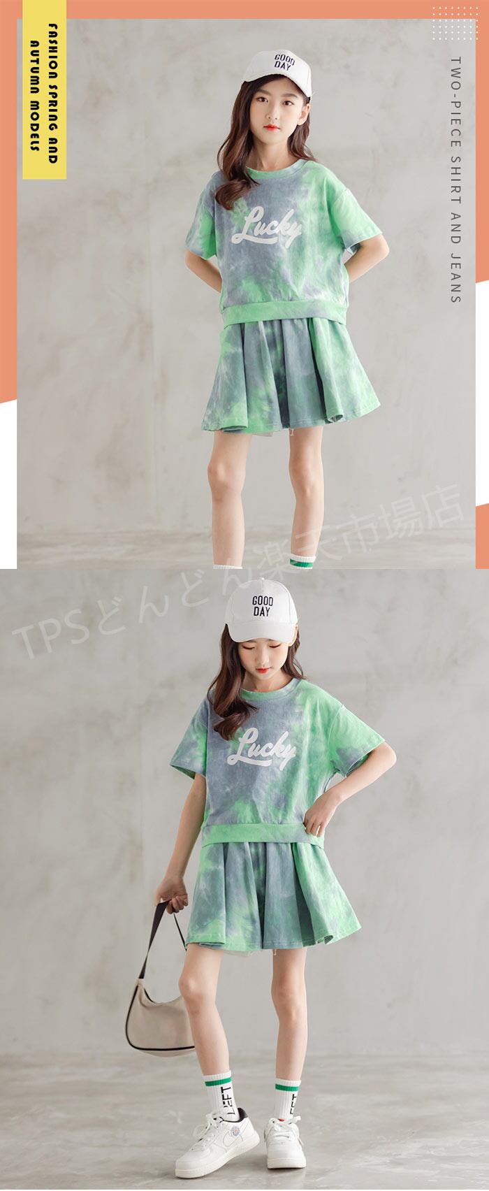 子供服 女の子 韓国子供服 夏服 半袖 2点セット セットアップ 上下セット キッズ 女の子 ダンス衣装 トップス ショートパンツ スカート チアリーダー 夏服 人気 スポーツウェア タイダイ ダンス服 テニス 運動着 通学着 グリーン ピンク オレンジ 120-165cm ジュニア服 | TPSどんどん
