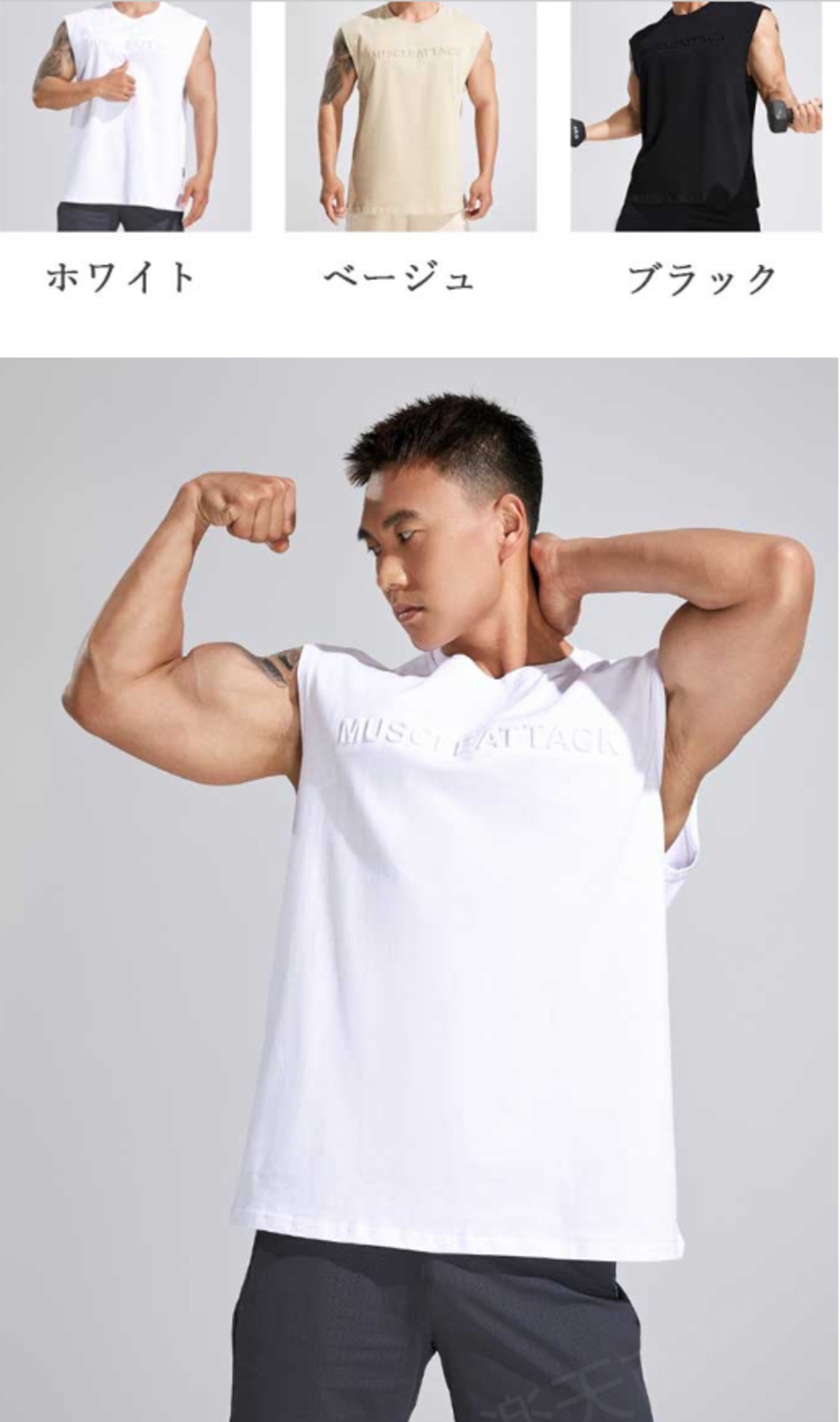 ノースリーブタイプで鍛えた筋肉が際立って見えます。男らしさと凛々しさを兼ねる備えたコーデはあなたのトレーニングライフを盛り上げてくれます。<BR>
