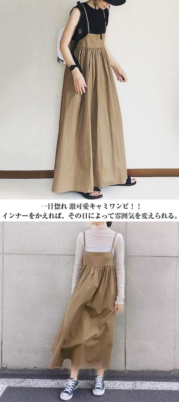 ジャンパースカート 夏 レディース ワンピース ロング ロングワンピース きれいめ レディース オールインワン 体型カバー サロペット ワンピース カジュアル シンプル 春 夏 サロペワンピ ベージュ ブラック | TPSどんどん