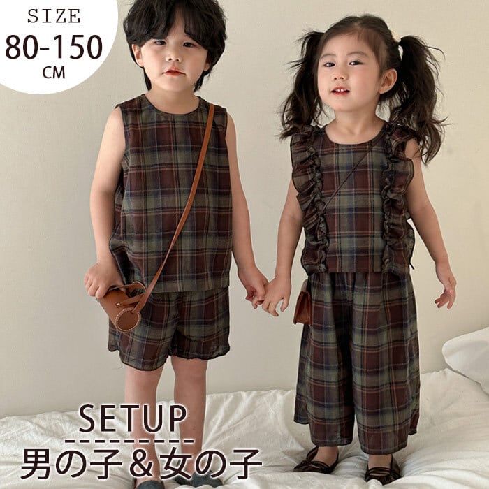 子ども セットアップ 男の子 女の子 夏服 キッズ 姉妹 兄弟 お揃い キッズ ベビー服 パンツセット おしゃれ 子供用 サマーセット 80 90 100 110 120 130 夏服 可愛い 赤ちゃん ルームウェア 部屋着 春 夏 チェック柄 | TPSどんどん