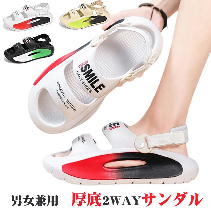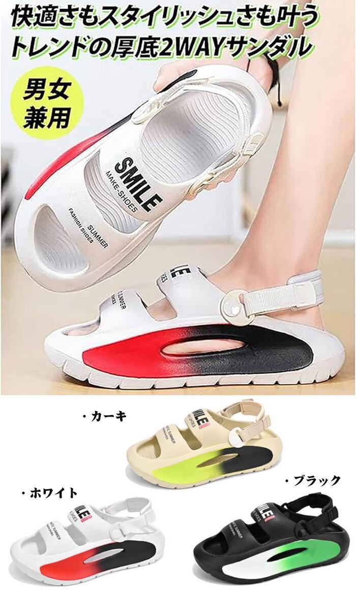 <p>厚底2WAYサンダル男女兼用:ユニセックスデザイン、クッション性抜群、美脚対策に、一体成型、クッション性、高密度、軽量速乾。</p>