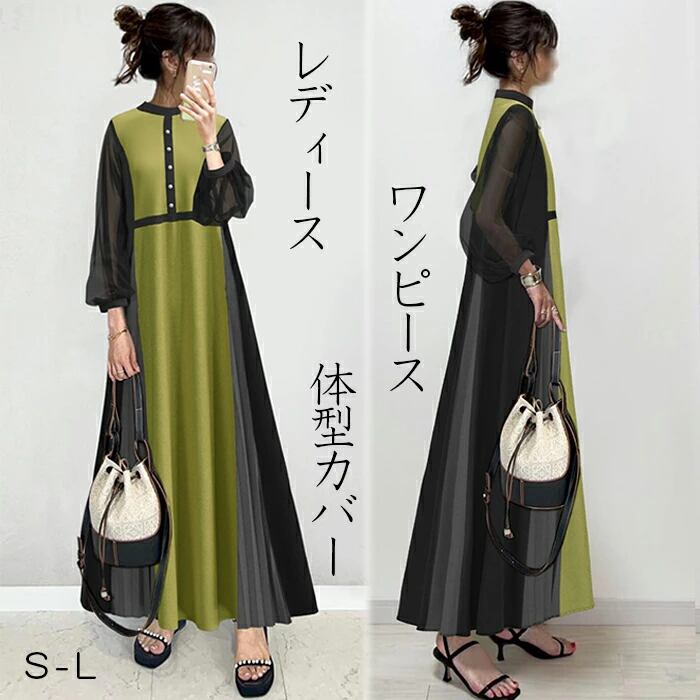 ワンピース きれい レディース ワンピース ゆったり 体型カバー 大きいサイズ レディース きれいめ シースルー ロング丈 ドレス 春 長袖 ワンピ フォーマル カジュアル 20代 30代 40代 | TPSどんどん