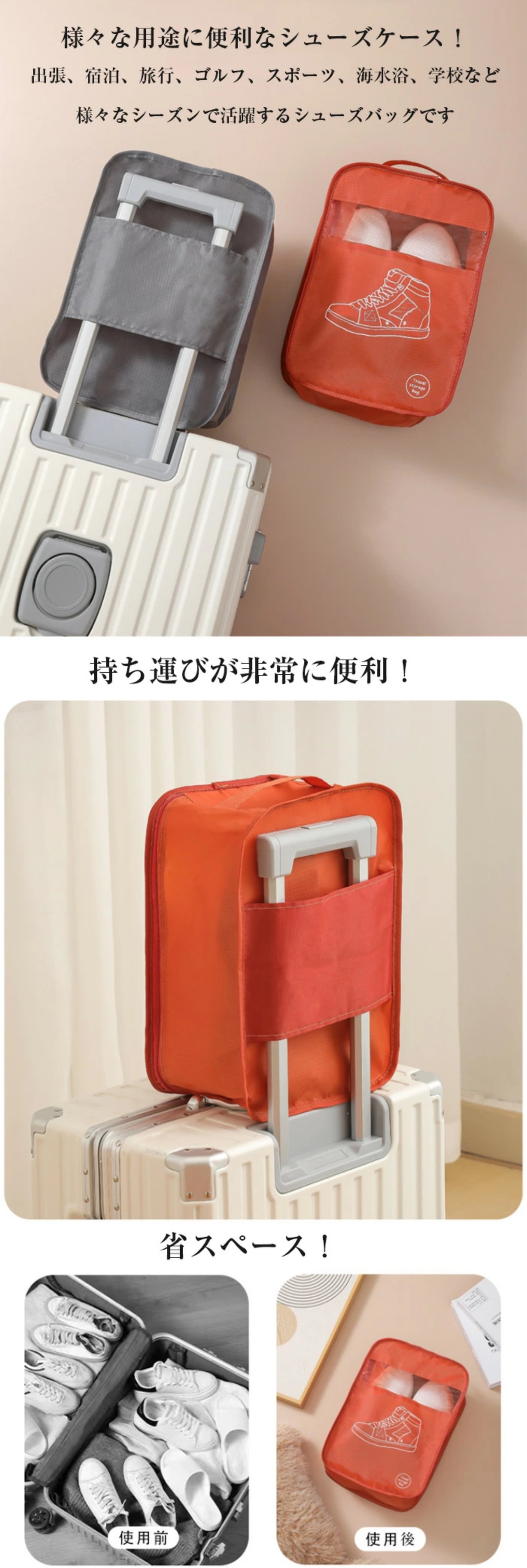 【様々な用途】様々な用途に便利なシューズケース!出張、宿泊、旅行、ゴルフ、スポーツ、ジム、海水浴、学校など様々なシーズンで活躍するシューズバッグです、ランニング・ジム用・テニス・アウトドア・インドアなど様々な種類のシューズを入れられます。