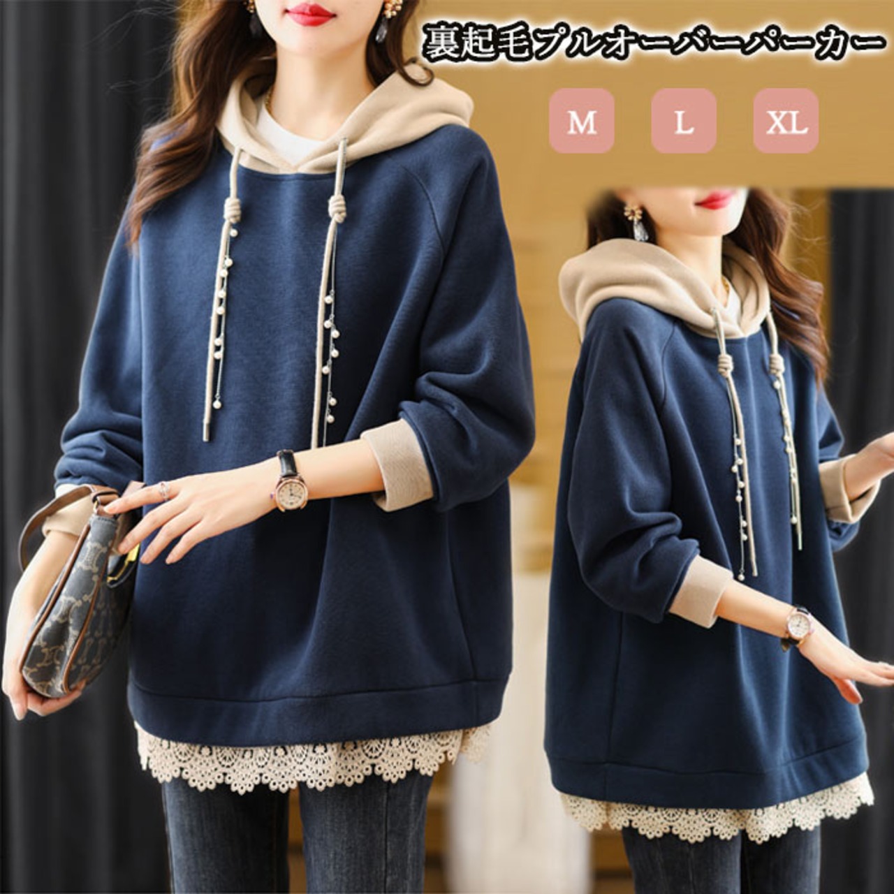 プルオーバー パーカー レディース 長袖 フード付き パーカー レディース トップス 長袖 裏毛 裏起毛 花柄 刺繍 大きめ パーカー レディース おしゃれ 裏起毛 パーカー レディース 大きめ フード付きパーカー オーバーサイズ ゆったり ネイビー | TPSどんどん