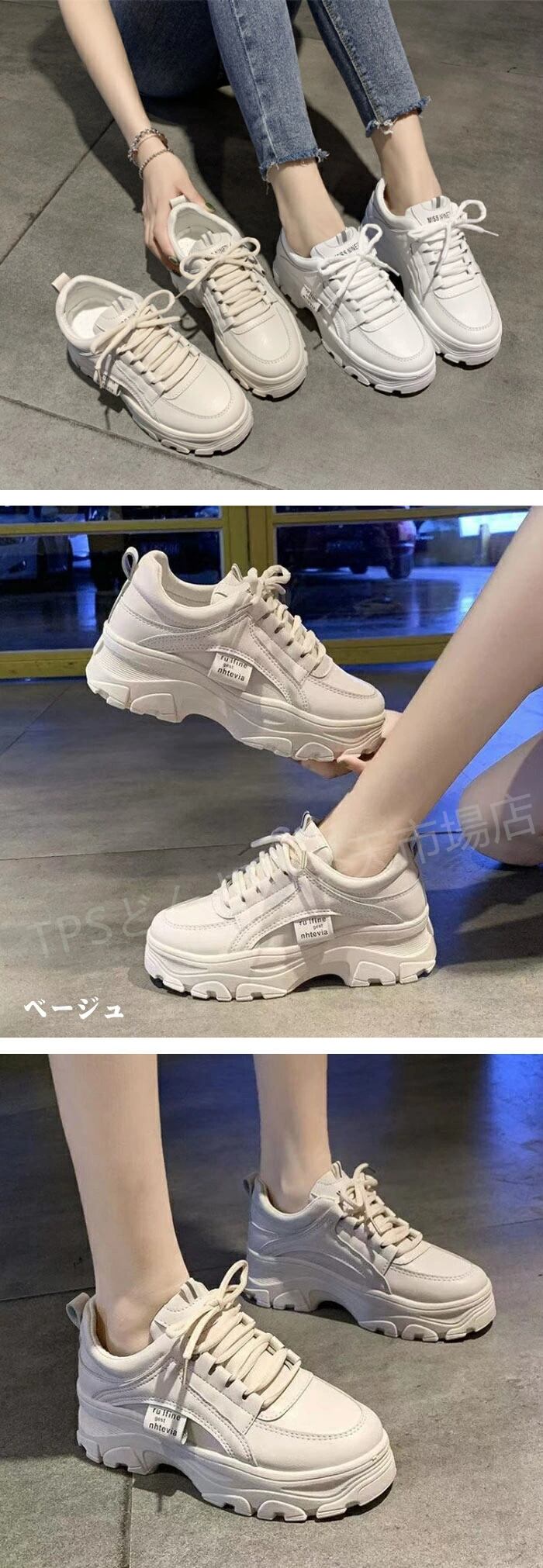 スニーカー レディース 厚底スニーカー ウォーキングシューズ レディース 靴 白 厚底 スニーカー レディース レディースシューズ スニーカー ウォーキングシューズ インヒール 厚底シューズ 軽量 インヒール 美脚 レースアップ 滑らない 防滑ソール | TPSどんどん
