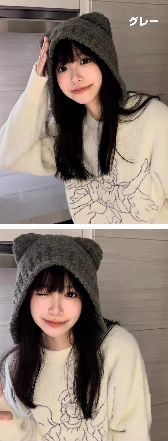 商品名 商品名:寒いシーズンの必須アイテム!ニット帽 くま耳 猫耳hyy-cap38