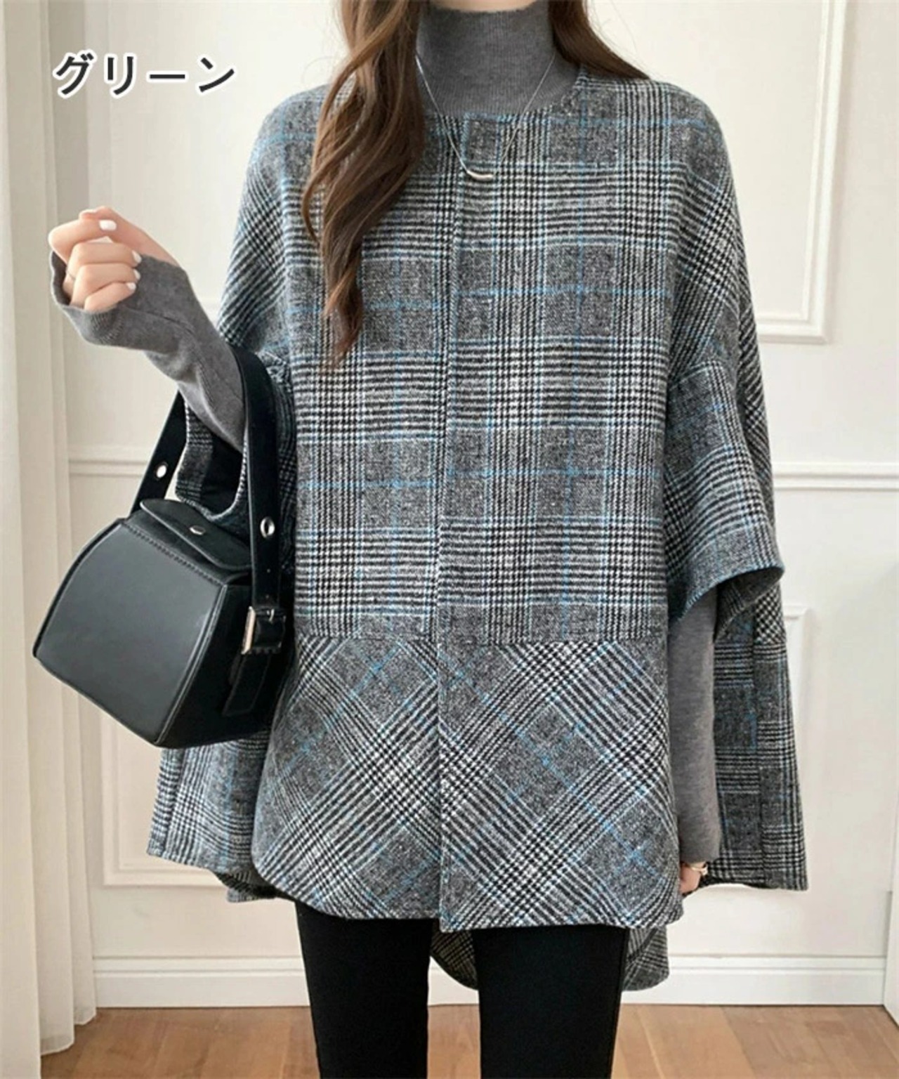 ポンチョ レディース ケープ ポンチョ トップス 羽織 コート ドルマン アウター チェック あったか 防寒 レトロ 前開き ボタン付き カーディガン 体型カバー おしゃれ カジュアル オフィス きれいめ 女性 30代 50代 | TPSどんどん