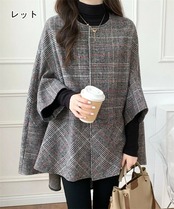 商品名 レディース チェック柄 ポンチョcmd-lady66