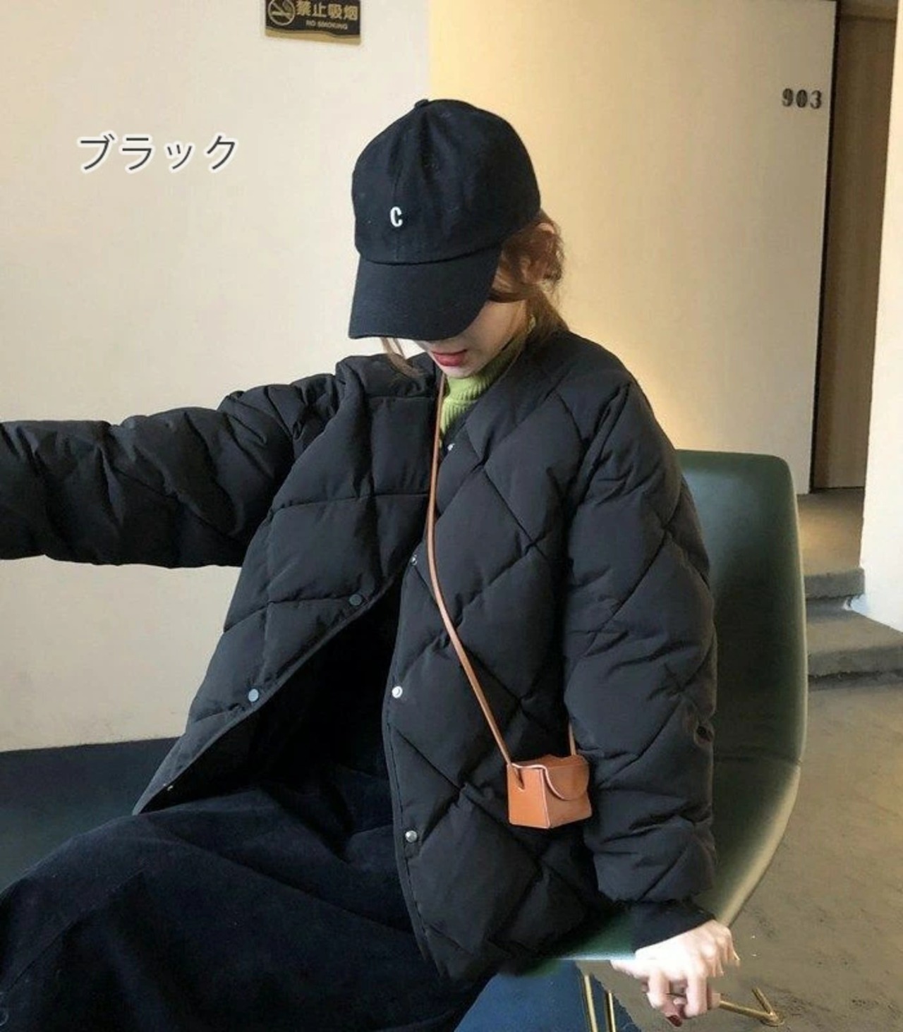 斜めキルティング模様が秋冬でも着ぶくれせず着やせに見えるスタイリッシュな雰囲気の中綿入りジャケット!