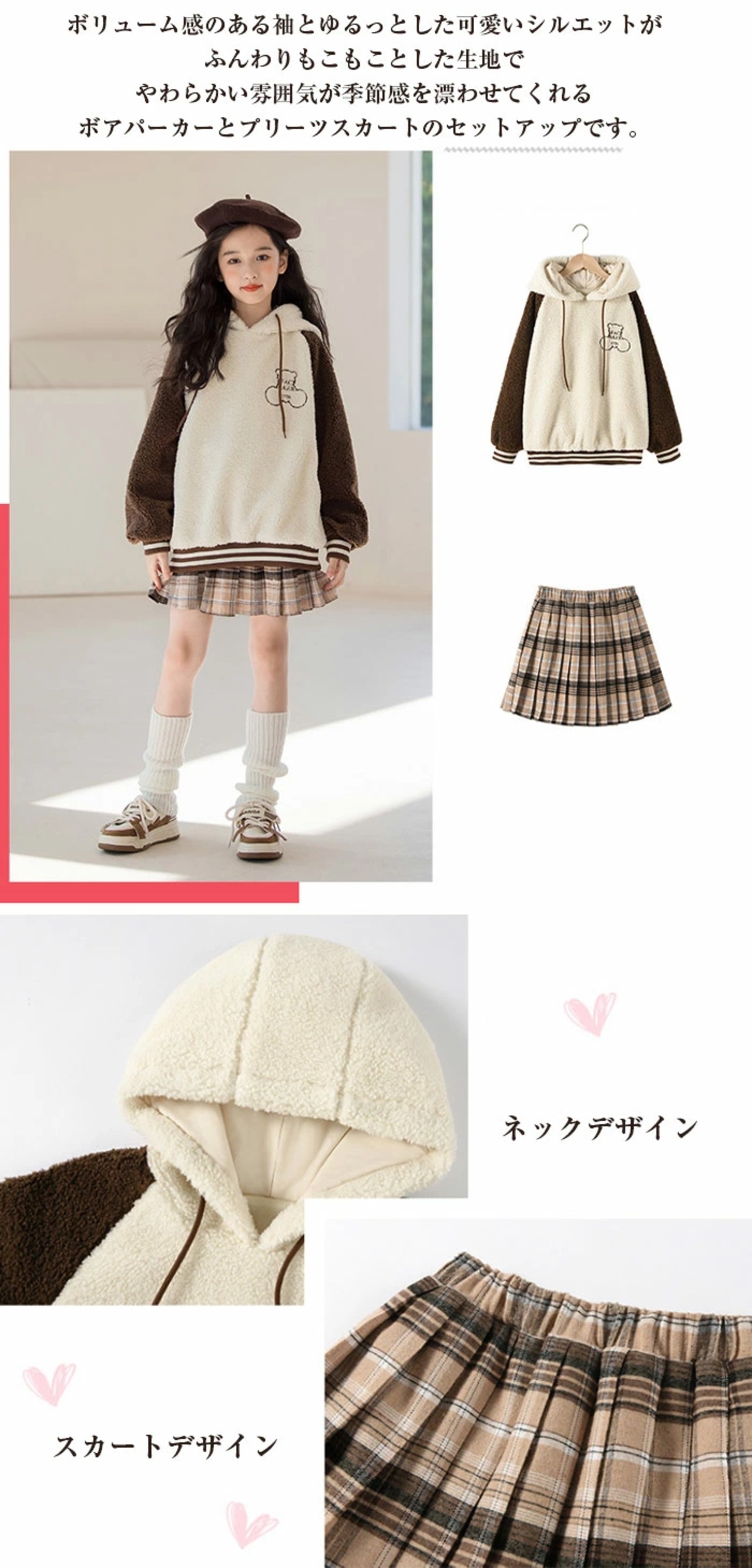 子供服 女の子 セットアップ ボアパーカー 冬 スカートセットアップ ボアパーカー 2点セット キッズ服 女の子 ダンス服 上下セット スウェット トップス スカート 長袖 厚手 防寒 カジュアル 可愛い 小学生 中学生 高校生 通学 | TPSどんどん