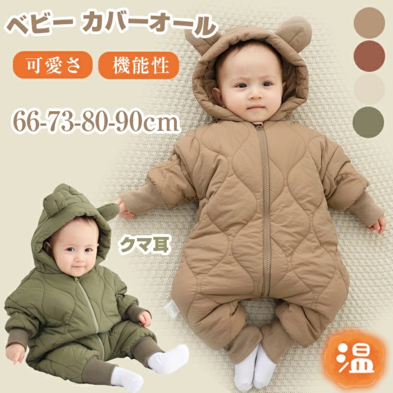 カバーオール ベビー服 アウター ロンパース 新生児 退院 冬 厚手 ベビー 防寒 フード付 つなぎ 前開き ファスナー クマ耳 防寒着 秋 冬 中綿 裏ボア 男の子 女の子 パジャマ ルームウェア コート 帽子付き 長袖 厚手 赤ちゃん 着ぐるみ | TPSどんどん