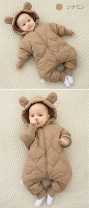 可愛いクマの耳付きなデザイン、赤ちゃんの頭を寒さから守ることができます。厚手のウォームアップのベアースーツに手袋を合わせると、寒い日にぴったりです。