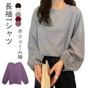 Tシャツ レディース 長袖 トップス カットソー インナー 秋 冬 丸首 カジュアル 無地 着回し ゆったり ボリューム袖 着痩せ 耐久性 伸縮性 通気性 ホワイト ブラック Uネック 丸首 無地 シンプル インナー | TPSどんどん