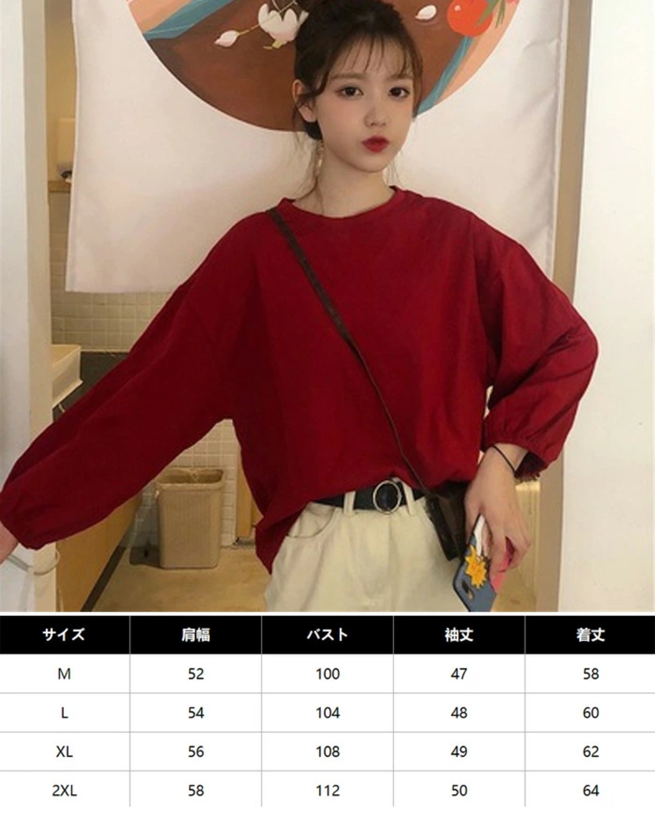 定番の丸首デザインはシンプルで清潔感を引き立て、首元をすっきりと長く見せ、スタイリッシュな印象を与え長袖 Tシャツ。袖のデザインは動きに合わせて軽やかに揺れ、全体のシルエットをバランスよく整えるため、どんな体型の方にも美しいラインを作り出す長袖 Tシャツ。