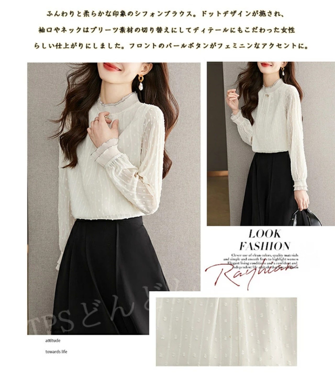 送料無料 シフォン ブラウス 長袖 レディース 長袖 秋冬 オフィス 立ち襟 tシャツ シャツ トップス 無地 春夏 プルオーバー カジュアル おしゃれ 通勤 スーツ インナー カットソー フォーマル きれいめ シフォン 涼しい 母 ママ S M L XL XXL | TPSどんどん