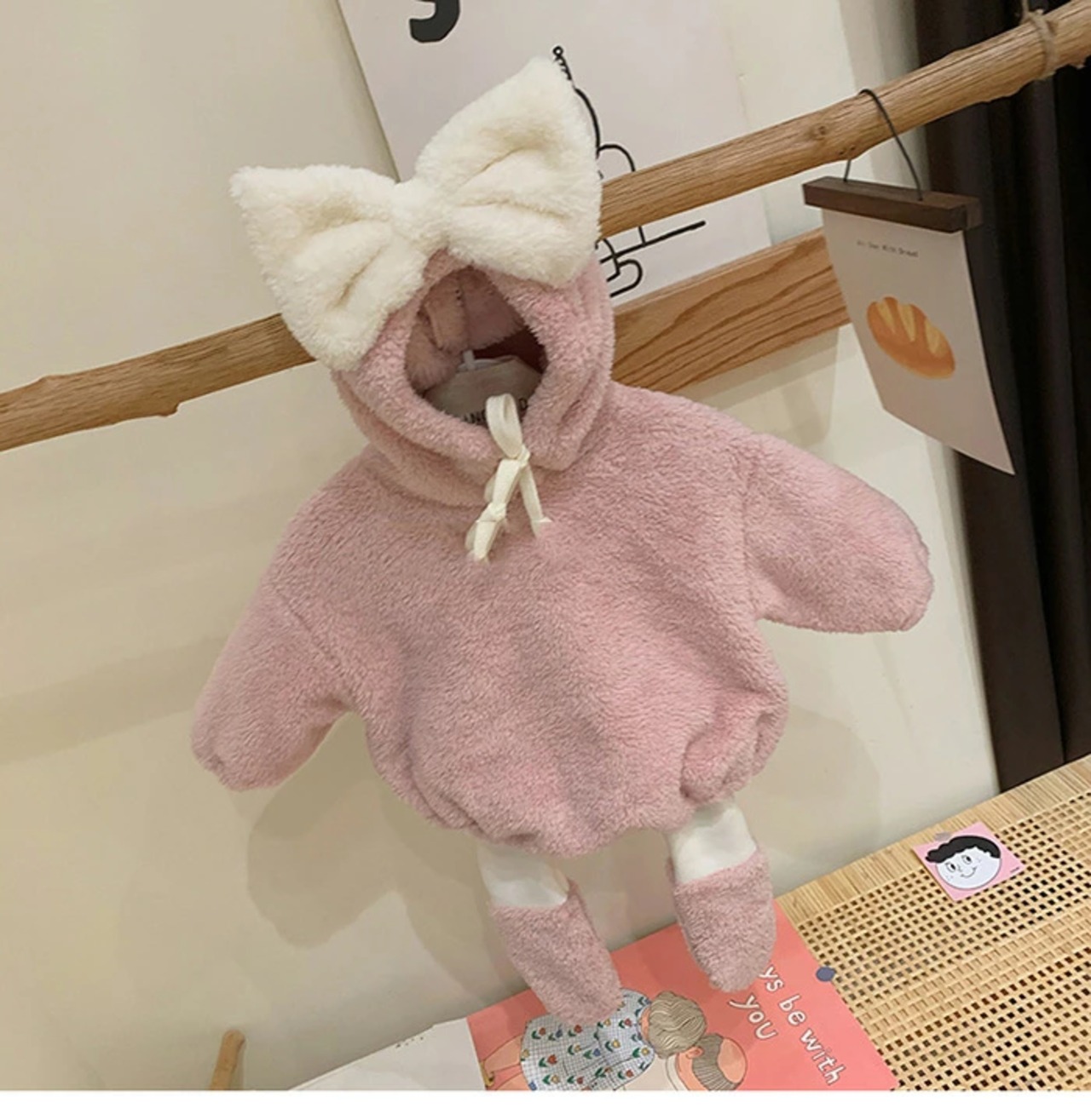 裏地はぬいぐるみのような、軽くて柔らかなアクリル繊維素材。ふわふわでモコモコな触り心地、敏感肌の赤ちゃんも使える