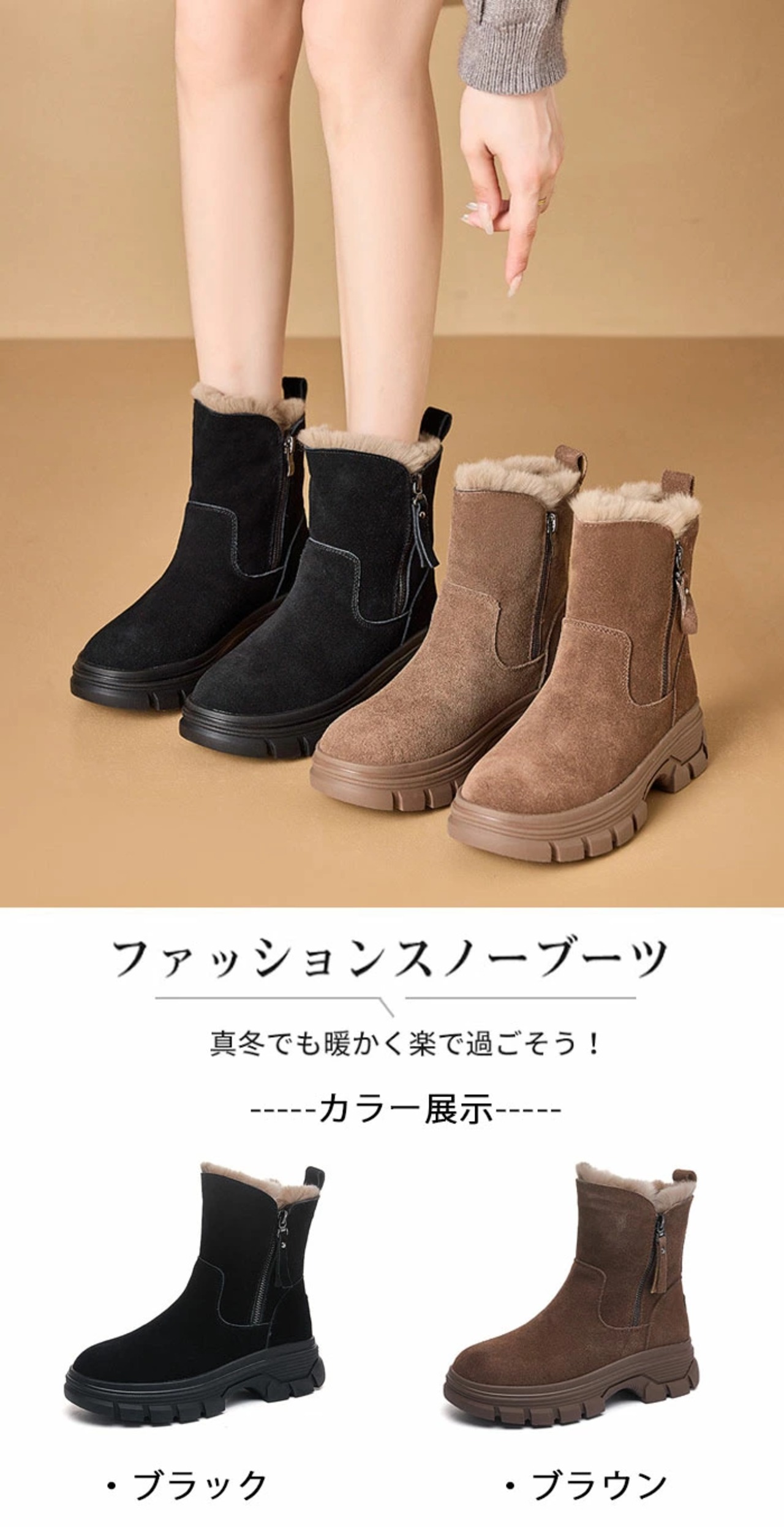 スノーブーツ レディース スノーシューズ 防寒靴 滑らない ブーツ レディース ショートブーツ 厚底 防滑 防寒 裏起毛 おしゃれ ヒール 4cm ファスナー ショートブーツ 美脚 綿靴 ブラック 暖かい 冬用 カジュアル 通勤通学 脱ぎ履き便利 | TPSどんどん