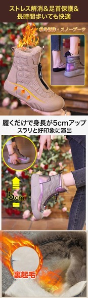 肉厚裏ボアで、保温性抜群、ストーブに包み込まれるように暖かい、厚底で身長アップできる、視覚的に5cm長く見える、スリムで背が高く見える