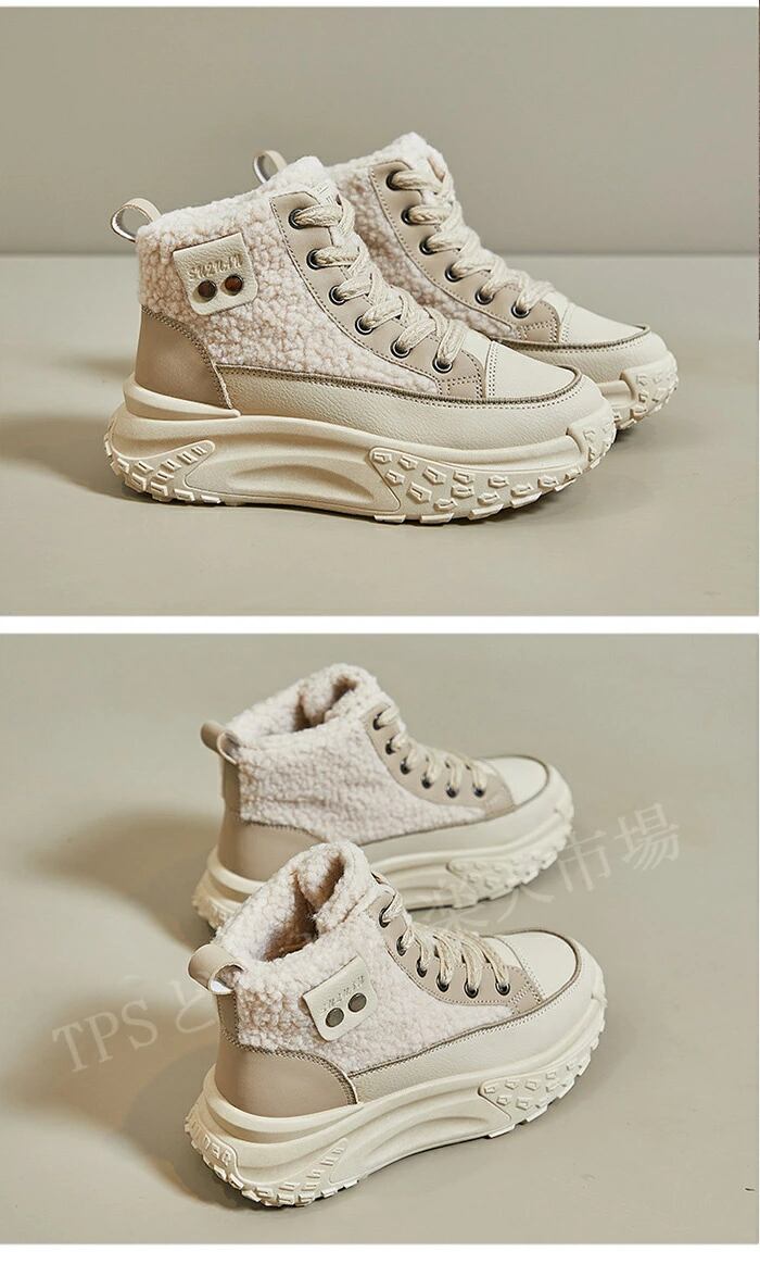 スノーシューズの内部には高密度の暖かい毛皮の裏地付き、冷たい空気を遮断し、とても柔らかくて、足を優しく保温できます。履き心地とてもいいです。厚底で安定感抜群、歩きやすいのが嬉しいポイントで、お出掛けが楽しくなること間違いなし。