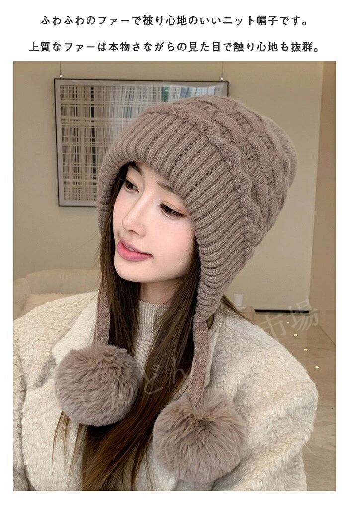 帽子 レディース 秋冬 ニットデビルハット ポンポン 防寒対策 ふわふわ 可愛い あったかい ニットキャップ 厚手 暖かい 小顔効果 帽子 レディースハット 肌触り良い 裏起毛 ふんわり 無地 | TPSどんどん