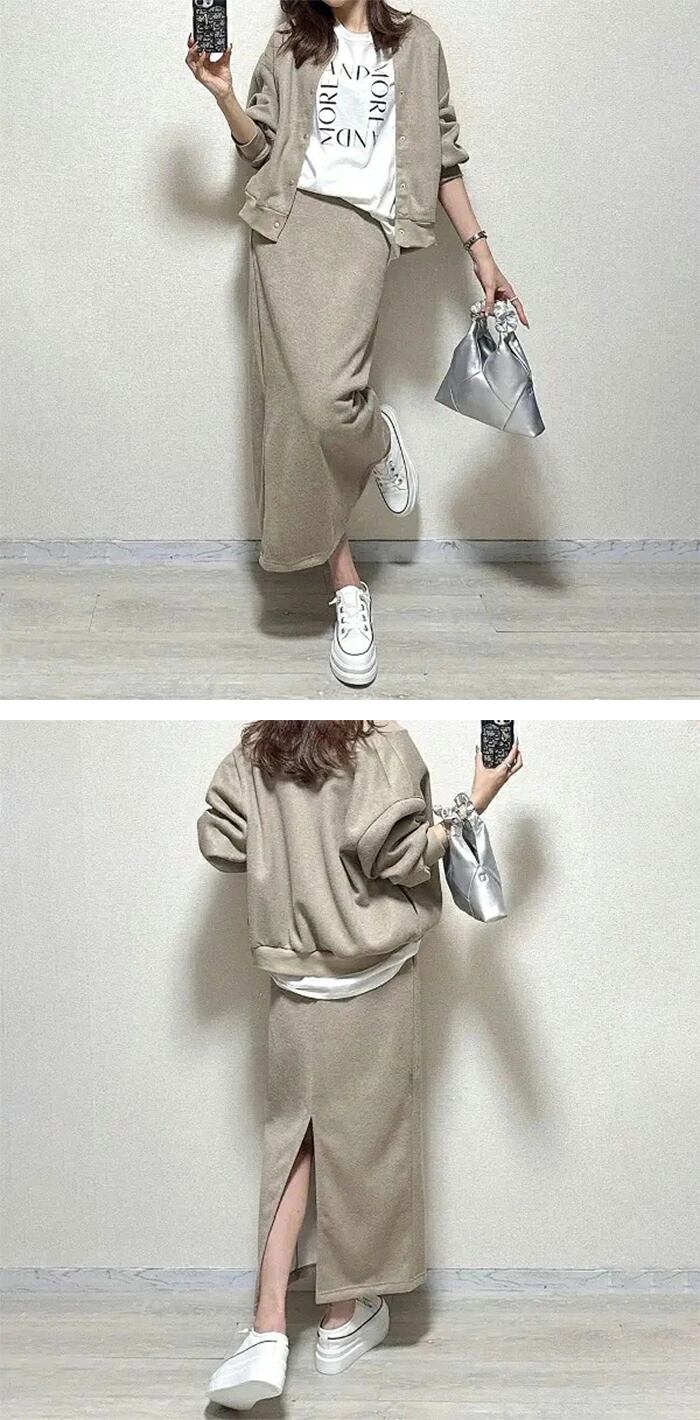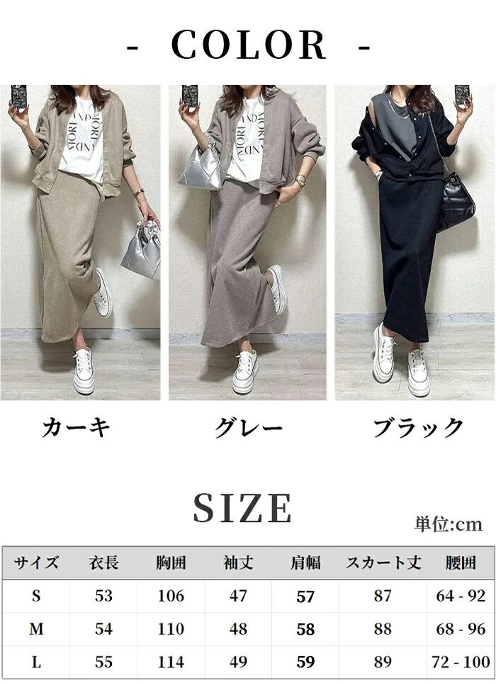 2点セット レディース アウター&ロングスカート 上下セット セットアップ スカートスーツ 春服 秋服 ジャケット コート パーカー スウェット ストレート 後ろスリット 無地 カジュアル ゆったり シンプル オシャレ リゾート 春 夏 秋 | TPSどんどん