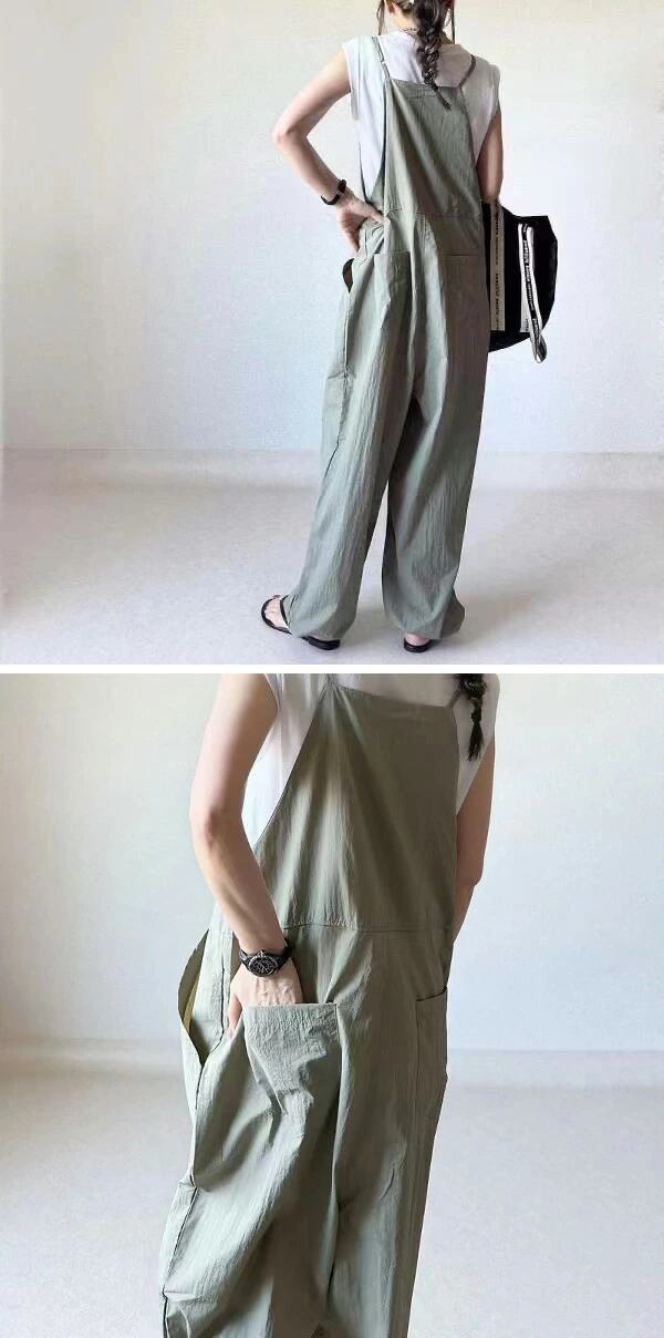 オールインワン サロペット レディース ノースリーブ キャミソール 夏 パンツ ワイドパンツ きれいめ 無地 オーバーオール ロング ワイド キャミサロペット ボトム シンプル ポケット カジュアル 体型カバー ゆったり 大人可愛い | TPSどんどん