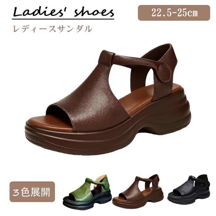 厚底サンダル レディース 軽量 疲れない 5cm身長アップ 通気性 滑り止め 厚底スリッポン ウエッジソール ベルクロ ストラップ カジュアル オフィス 通勤 春夏 マジックテープ式 | TPSどんどん