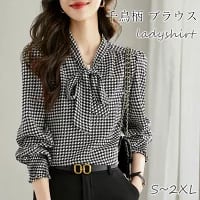 千鳥柄 ブラウス レディース シャツ 長袖 パフスリーブ リボン エレガント 可愛い 着痩せ 着回し力 普段着 春秋冬 ブラウス レディース 長袖 オシャレ きれいめ スーツ インナー 長袖ブラウス フォーマルブラウス オフィスブラウス | TPSどんどん