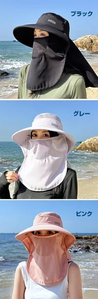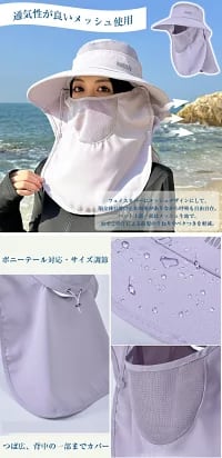 【通気性が良いメッシュ使用】フェイスカバーに口鼻呼吸用のメッシュデザインにして、顔全体日焼け止め効果がありながら呼吸も自由自在。ハット上部一部はメッシュ生地デザインで、おでこの汗による前髪のうねりやベタつきを軽減。