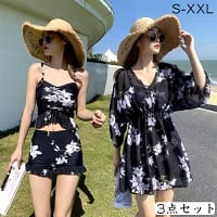 レディース 水着 3点セット 可愛い水着 ショートパンツ ジャケット付き パット付き タンキニ ラッシュガード ビキニ 体型カバー 透け感 ビーチウェア ハイウエスト 肌守り シフォン 大きいサイズ おしゃれ | TPSどんどん