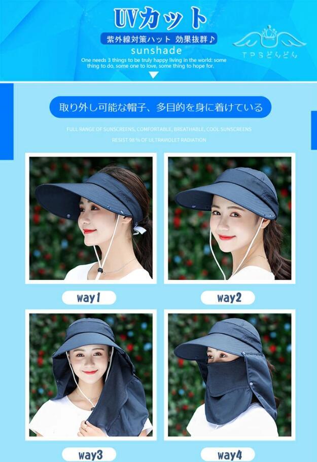 つば広帽子 母の日 ラッシュガード 旅行 庭仕事用 プレゼント 母の日 UVカットハット 日焼け防止 紫外線対策用ハット 帽子 日よけ帽子 取外し可 フェイスカバー付 サンバイザー 紫外線対策 ネックカバー レディース 折畳み可 アウトドア | TPSどんどん