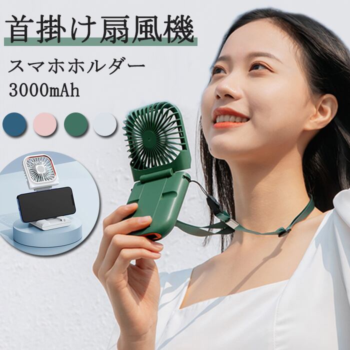 掛け扇風機 手持ち扇風機 ハンディファン 卓上 スマホホルダー 携帯扇風機 ハンズフリー スタンド機能付き ネックファン 3段階風量 くびかけ扇風機 ミニ扇風機 軽量 3000mah 強風 静音運転 熱中症対策 ミニ 携帯便利 ポータブル シンプル | TPSどんどん