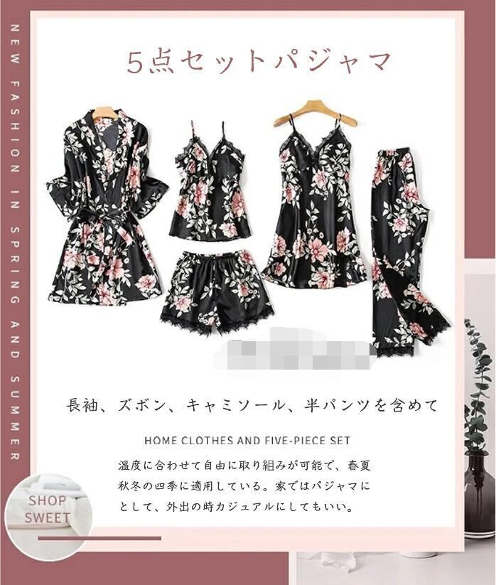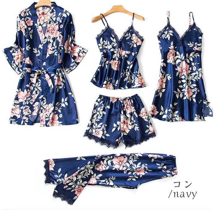 送料無料!パジャマ レディース ルームウェア 寝巻き 5点セット レディース ナイトウェア ルームワンピース 部屋着 可愛い 長袖 ガウン キャミソール ロングパンツ ショートパンツ セットアップ 上下セット 花柄 レース セクシー 秋 春 夏 | TPSどんどん