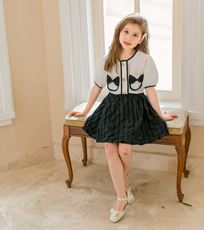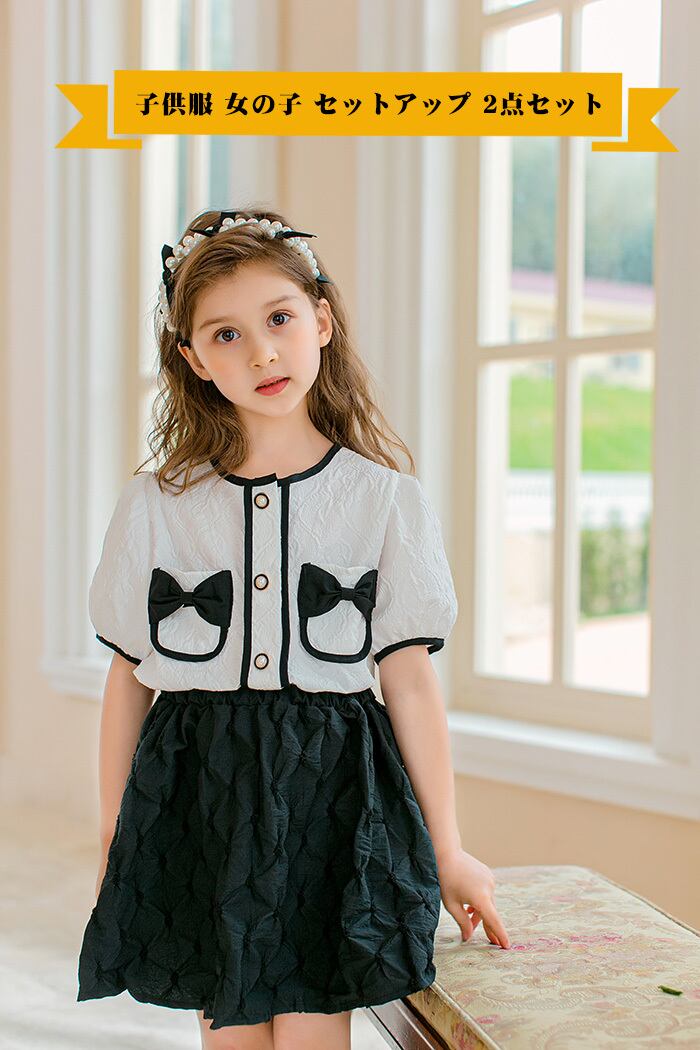 子供服 女の子 夏服 女の子 セットアップ 夏 2点セット 子供服 韓国子供服 上下セット 半袖 トップス スカート ブラウス 子ども服 オシャレ ジュニア服 大人っぽい ブラック 可愛い 普段着 お出かけ おしゃれ 通園 通学 110 120 130 140 150 | TPSどんどん