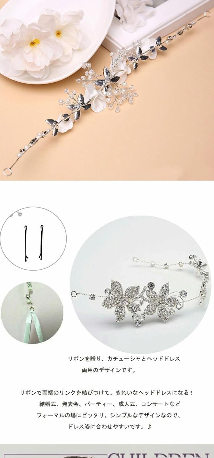 スタイル 結婚式、パーティー、成人式、コンサートなどフォーマルの場にピッタリ。光沢があるラインストーンがたくさん付いてキラキラ輝く、大きいフラワーのデザインで上品なヘアアクセサリーです。シンプルなデザインなので、ドレス姿に合わせやすいです。♪ 両端のリンクにヘアピンをお好きな位置につけて、アレンジ方法をお楽しみに♪存在感のあるデザイン髪飾り♪チューシャ!