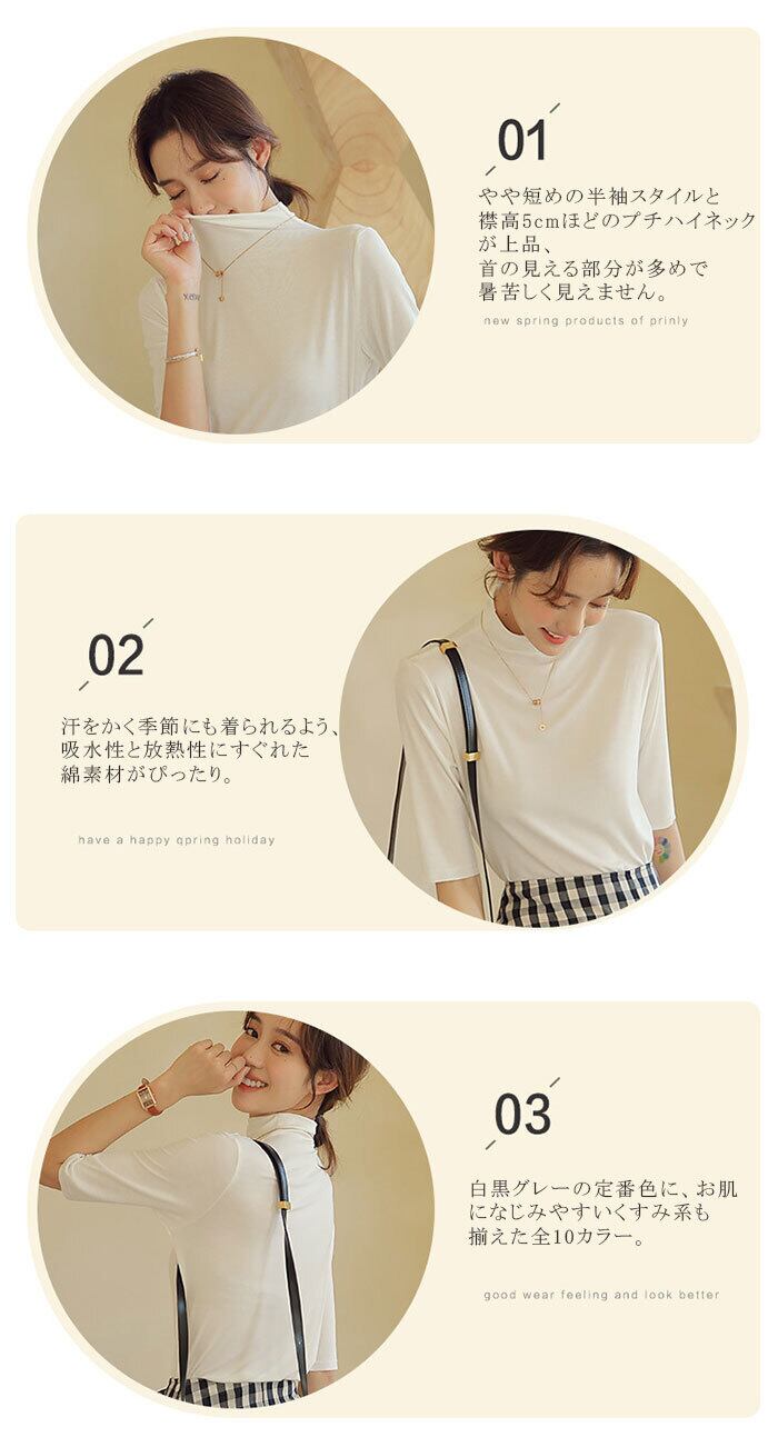2022新作 夏服 半袖 Tシャツ トップス ハイネック レディース 春 Tシャツ 無地 カットソー 半袖tシャツ 五分袖 タートルネック 薄手 フィット スリム 韓国 ファッション トレーナー 20代 30代 40代 OL | TPSどんどん