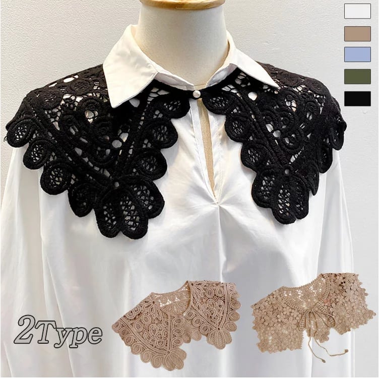 つけ襟 かぎ編み付け襟 刺繍 レース レイヤード 2枚セット つけえり レイヤードトップス 重ね着風 偽襟 襟 フェイク襟 付け衿 つけ衿 花柄 シャツ レディース 発表会 結婚式 おしゃれ チュール 可愛い シンプル 簡単 小物 ホワイト ブラック 通勤 オフィス 就職 フォーマル | TPSどんどん