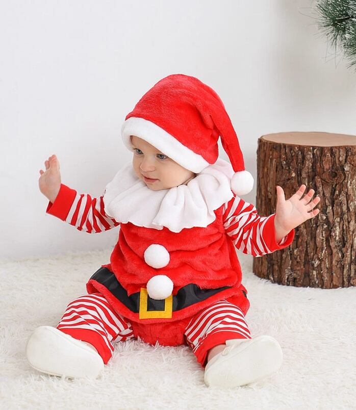 クリスマス服 サンタスーツ 3点セット サンタクロース 仮装 衣装 子供用 ベビー服 長袖 キッズ サンタ コスプレ サンタコス コスチューム クリスマス サンタクロース ウィッグ コスプ クリスマス 誕生日 プレゼント ギフト 柔らかい 帽子付き 70-95cm | TPSどんどん