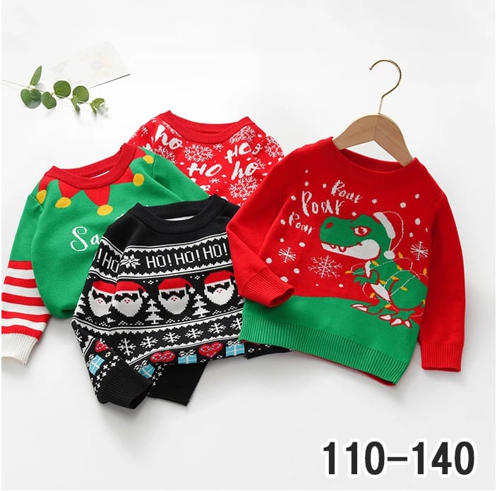 【超人気】子供セーター クリスマス ニット 長袖 恐竜 送料無料 子供服 子供 服 秋 トップス シンプル 女の子 女児 男の子 男児 キッズ ユニセックス 100 110 120 130 140cm 防寒 暖かい 通学着 小学生 クリスマス 誕生日 プレゼント ギフト | TPSどんどん