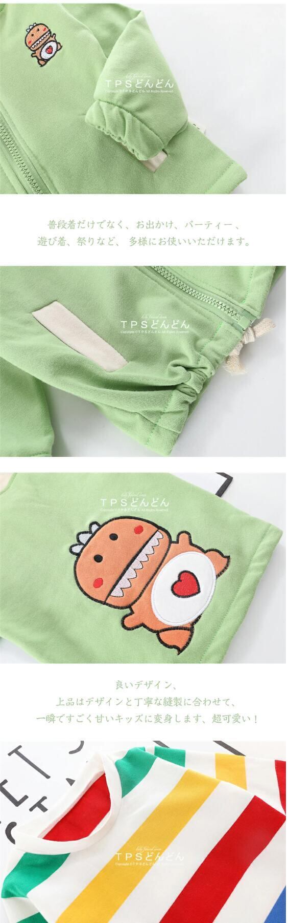 <p>可愛いデザインの恐竜セットアップ。ロングスリーブ+ジャケット+ズボンでこの秋冬に最適です。</p>