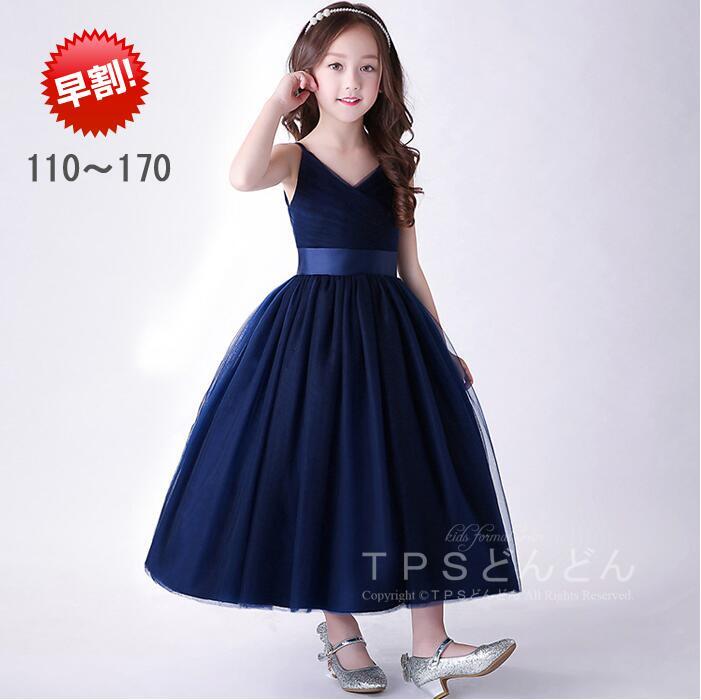 発表会 ドレス 子供 フォーマル 子供ドレス ロングドレス ピアノ発表会 ワンピース ジュニアドレス キッズドレス チュールドレス 子どもドレス 女の子 発表会 結婚式 演奏会 七五三 コンクール ネイビー 140 150 160 | TPSどんどん