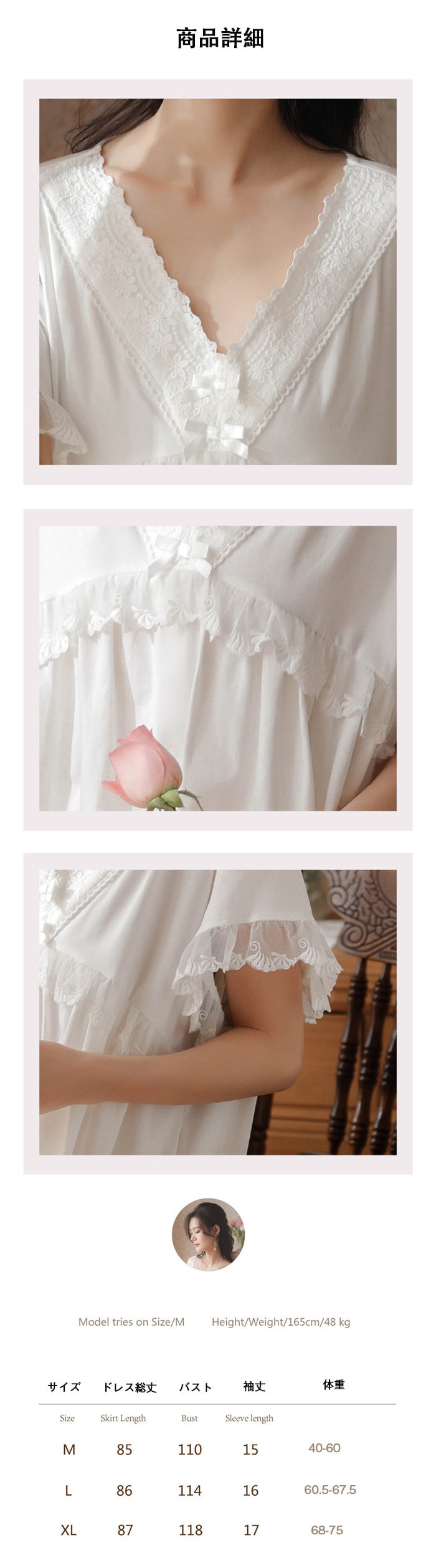 送料無料!ネグリジェ パジャマ レディース パジャマ ワンピース ルームウェア 半袖 姫系 可愛い レディース 部屋着 ワンピース 寝巻き 寝間着 春夏秋冬 パジャマ レディース 綿 大きいサイズ ナイティ ルームウェア マキシ丈ワンピ レース | TPSどんどん