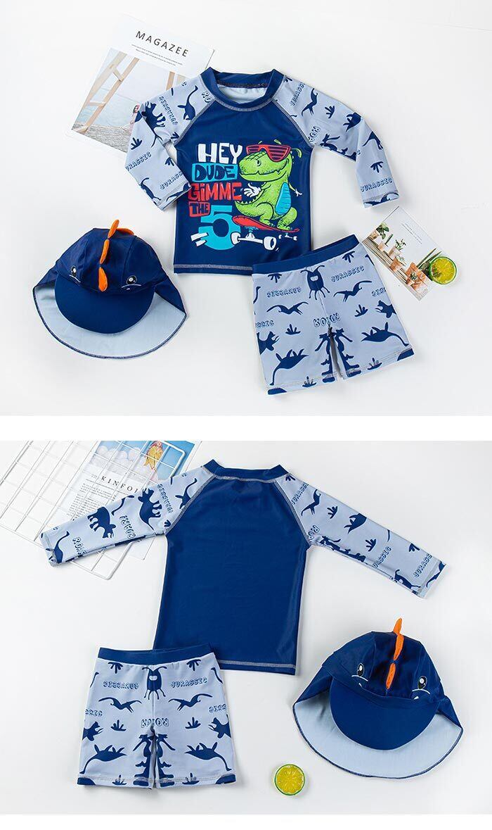 【送料無料】水着 男の子 水着 キッズ セパレート水着 キッズ 子供水着 恐竜柄 キャップ付き 3点セット ツーピース水着 UVカット ベビー水着 キッズ 男の子 男児 ボーイズ みずぎ スイムウェア UV対策 日焼け防止 ラッシュガード | TPSどんどん