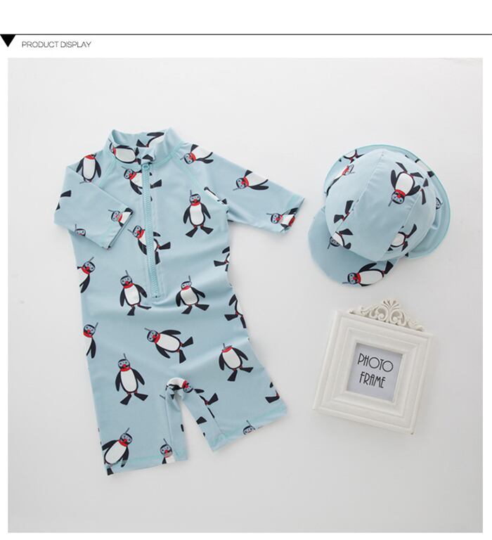 送料無料★ベビー 水着 男の子 セパレート キャップ付き ラッシュガード セット ロンパース ベビー 水着 長袖 キッズ水着 かっこいい 男の子 水着 スクール水着 キッズ 水着 長袖 キッズみずぎ ペンギン ベビースイミング 体型カバー | TPSどんどん