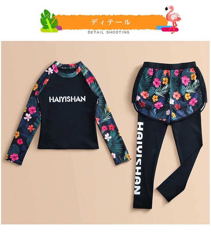 ラッシュガード キッズ 水着 女の子 セパレート 子供 上下セット 花柄 3点セット 子供水着 女の子 長袖 子供 水着 こども 子供用 セパレート 長パンツ スイムウェア ジュニア 水着 みずぎ 子ども レギンス ダイビングスーツ 水遊び 吸水速乾 水泳授業 海水浴 | TPSどんどん