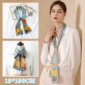 スカーフ シルクスカーフ ストール マフラー サテンスカーフ 襟巻 ミニサイズ(15*150CM)小さめ 首元 おしゃれ 春夏 レディース コンパクト 通勤 ギフト 高品質 プレゼント ギフト 母の日 衣装 舞台 制服 ブルー | TPSどんどん