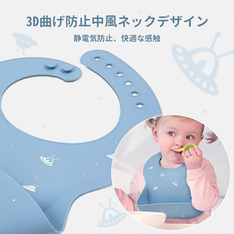 【大口径で深い溝】口径を大きくする防水のポケットデザインで、柔らかくて形があり、曲線は赤ちゃんの体にぴったりで、赤ちゃんの汁や飯粒を簡単に包み込むことができます。服を汚す心配もありません。赤ちゃんのお菓子などの小物を置くこともできます。